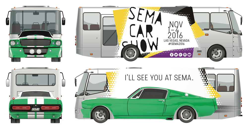 For this campaign the idea was to take SEMA to the next level, but using large bold photos of vintage cards and unique typography. I wanted SEMA to have a cleaner more refined look that focused on cars rather than the fact that it was a trade show. Using larger images and vector illustrations I kept the same design elements throughout each piece so that they felt cohesive and could be used together or separately.